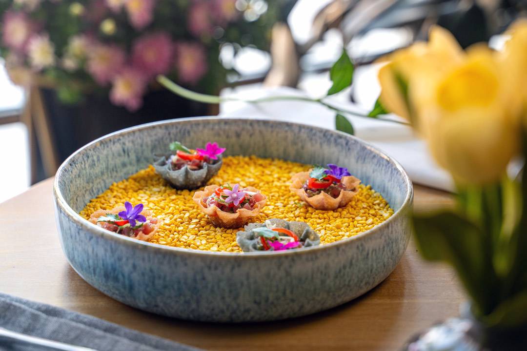 Delicate pastry cups filled with savoury tuna tartar and spices