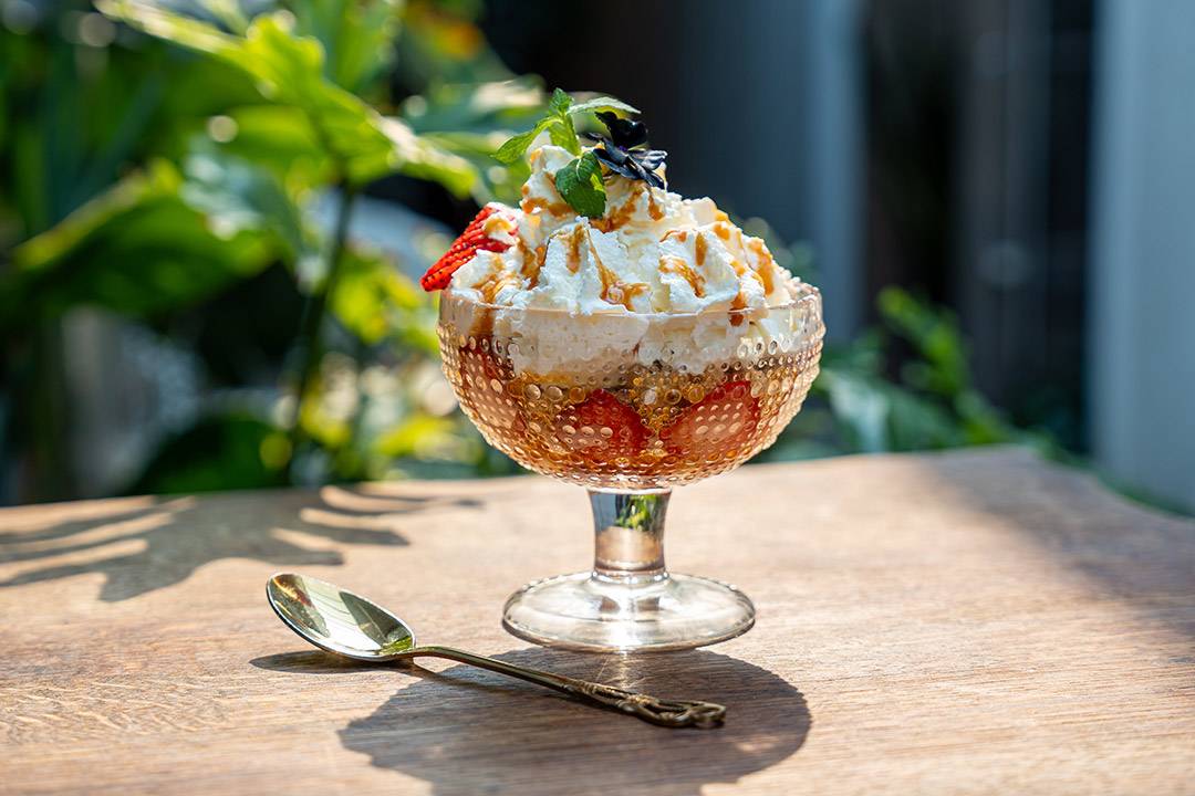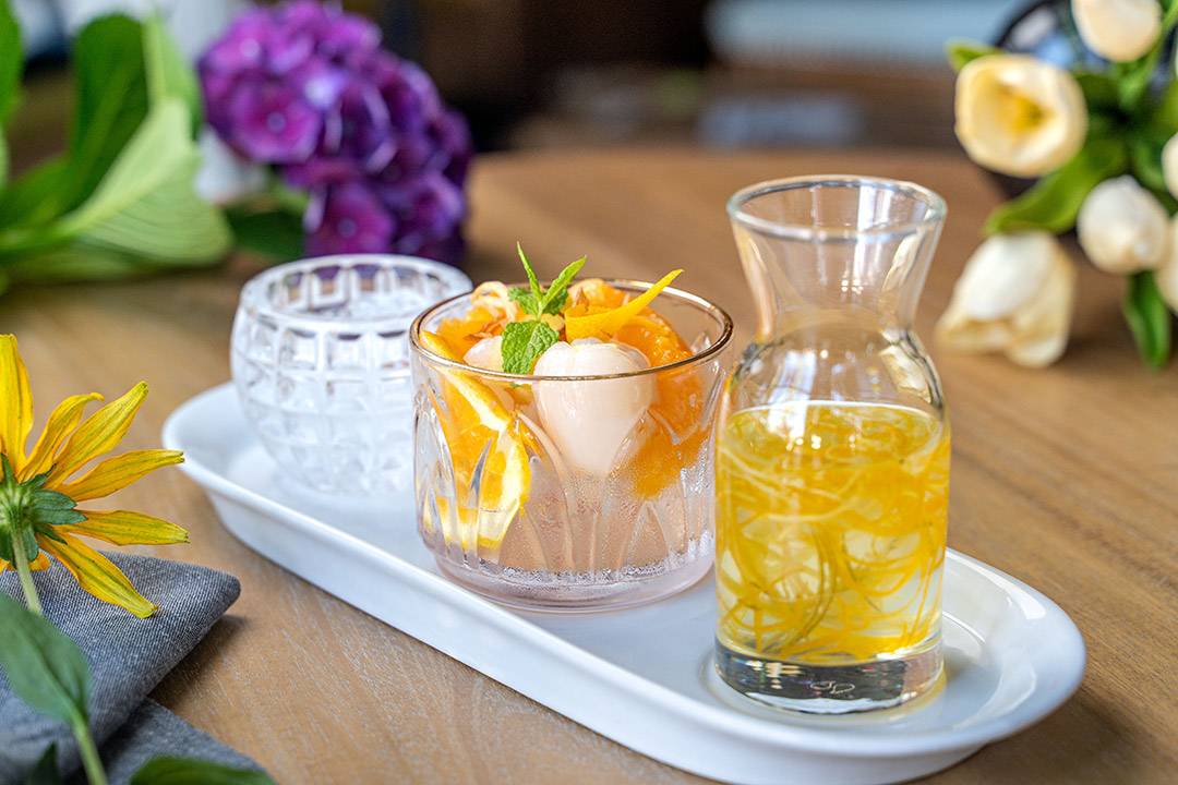 Lychee, pineapple, strawberry, jackfruit, and orange in jasmine-scented syrup,