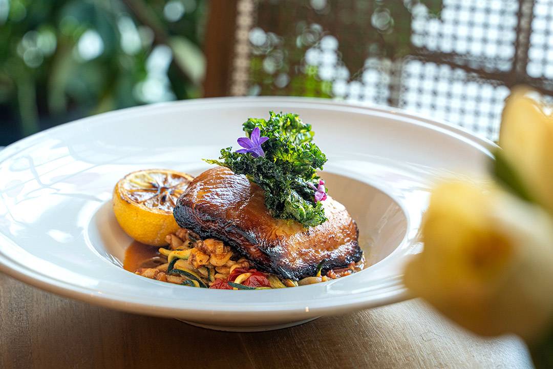 Black cod marinated in miso and sparkling wine, delicately sweet and savory,