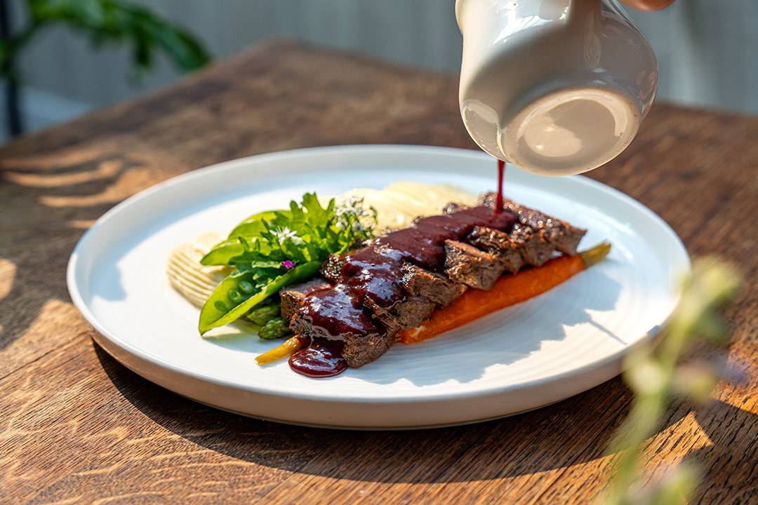 Tender sous vide steak, seared medium rare and served with mashed potatoes