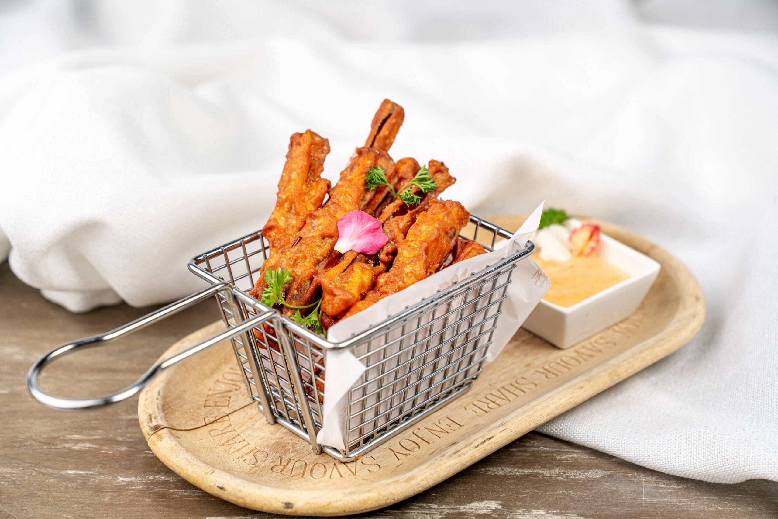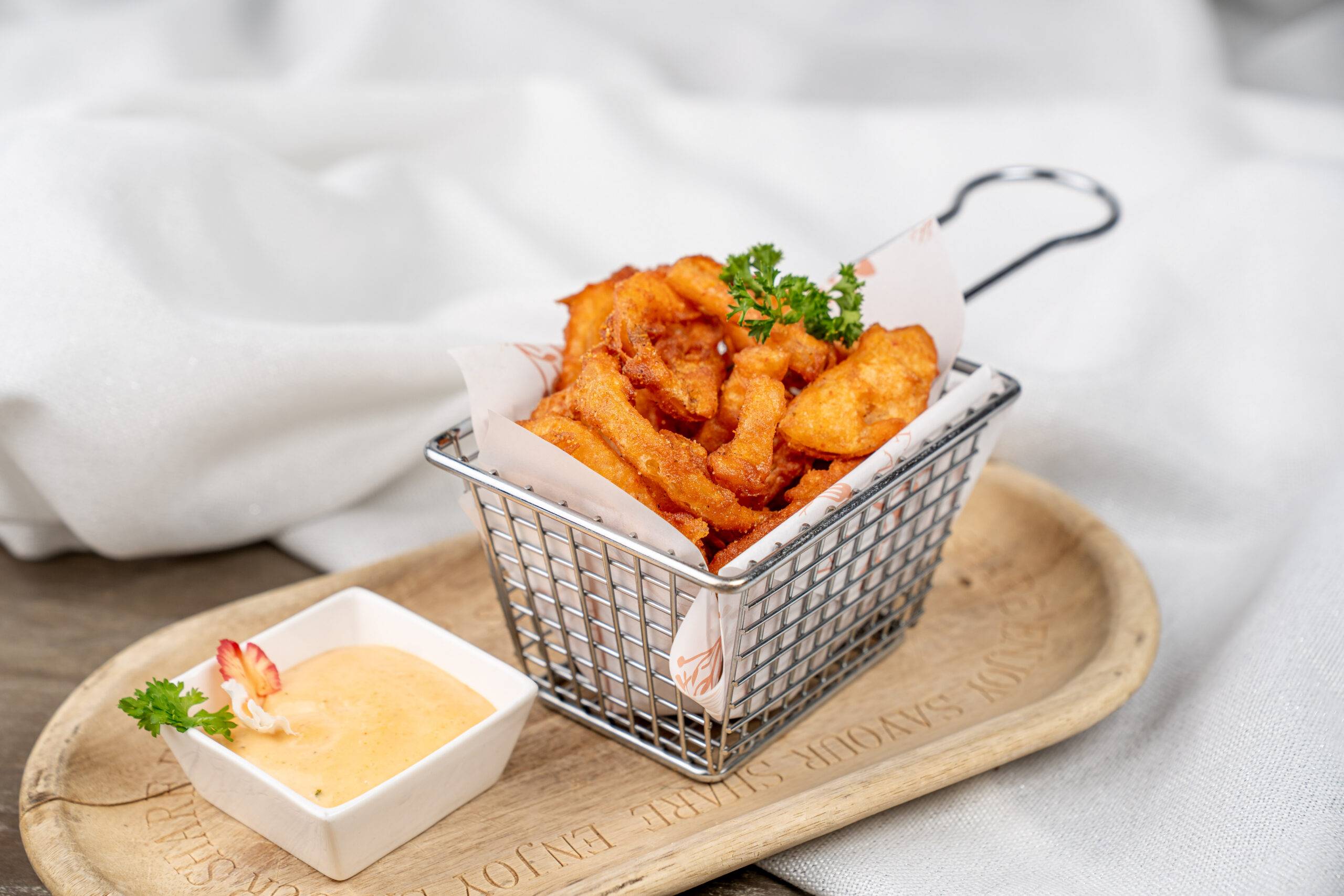 Cauliflower stems breaded with Singha batter. Served with leek sauce with