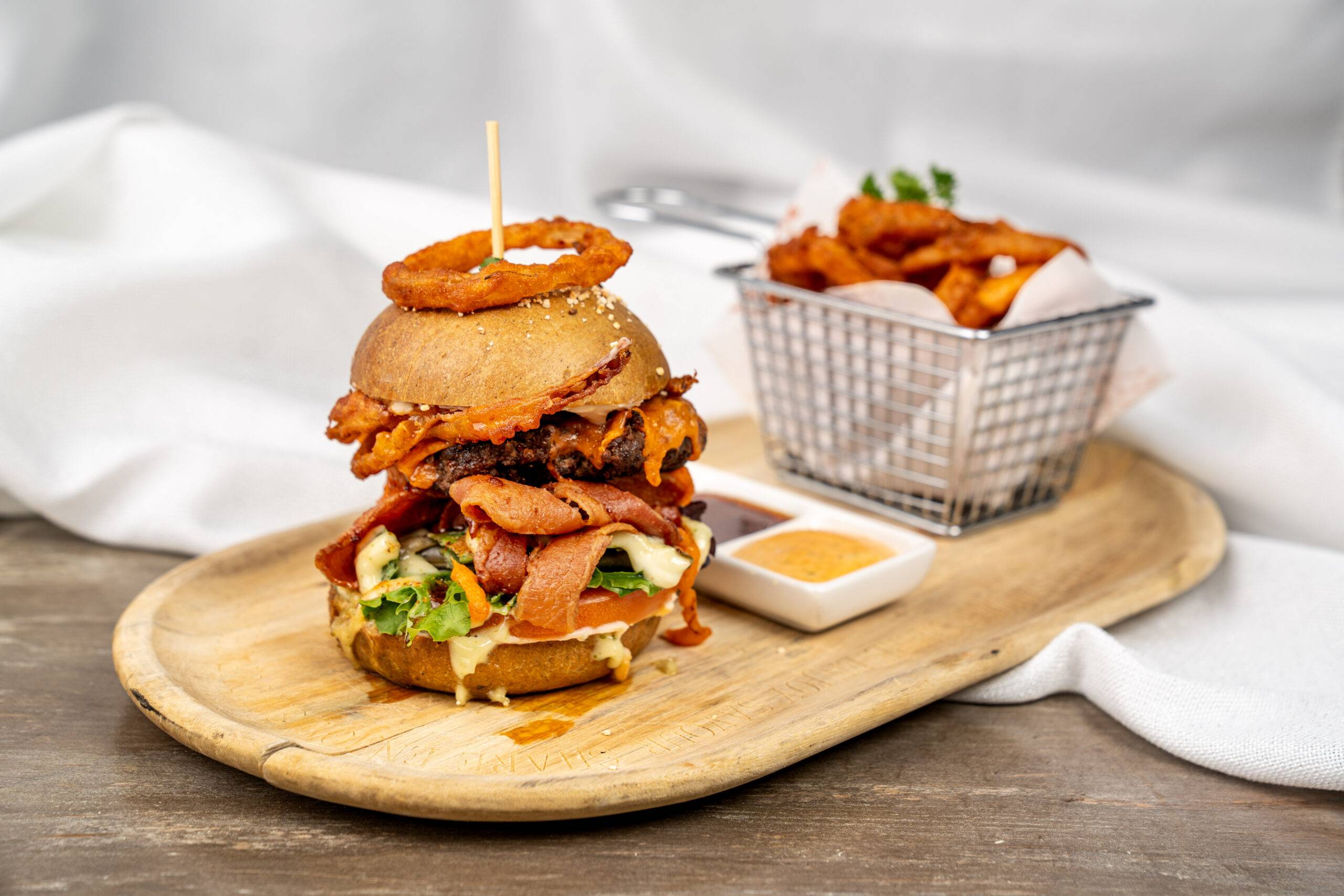 a carrot bun with Tom Yum fries and Nam Jim seafood mayo