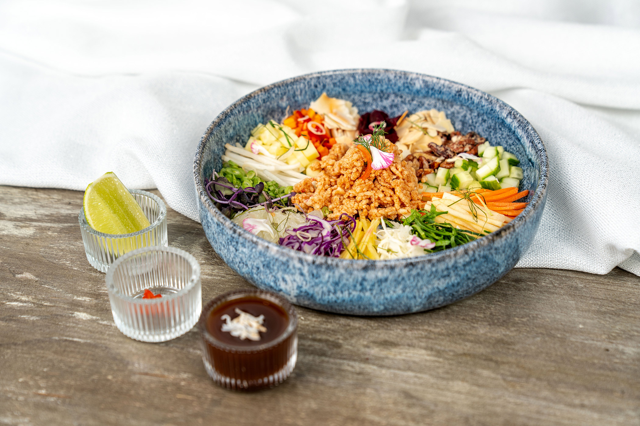Refreshing pomelo kernel, mixed with juicy citrus, herbs, and crunchy coconut,